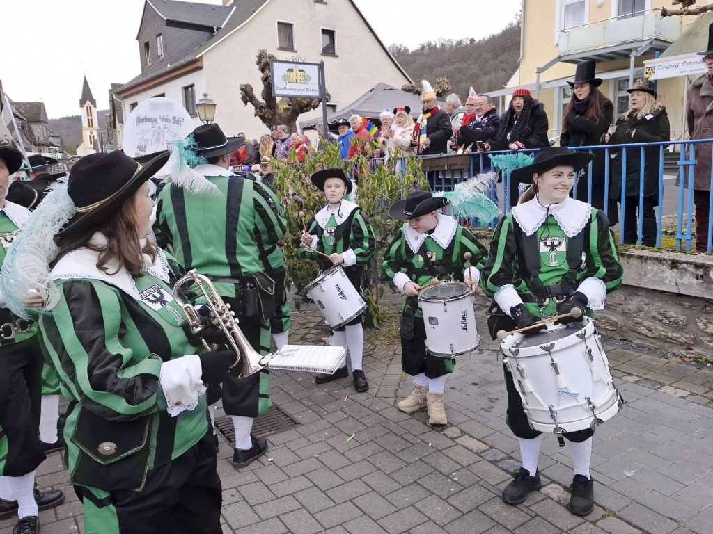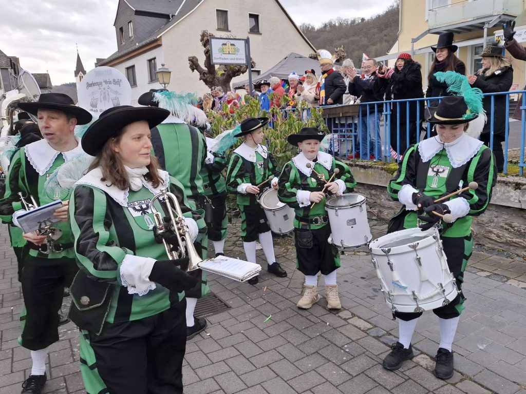 Gestern bestritt der Fanfarenzug den Karnevalsumzug in unserem Heimatort. Wie immer hat der Wettergott über Salzig gewacht auch wenn es sehr kalt war und der Umzug blieb trocken. Als erster Zugpunkt führten wir wieder den närrischen Zug durch die vollen Straßen von Bad Salzig.