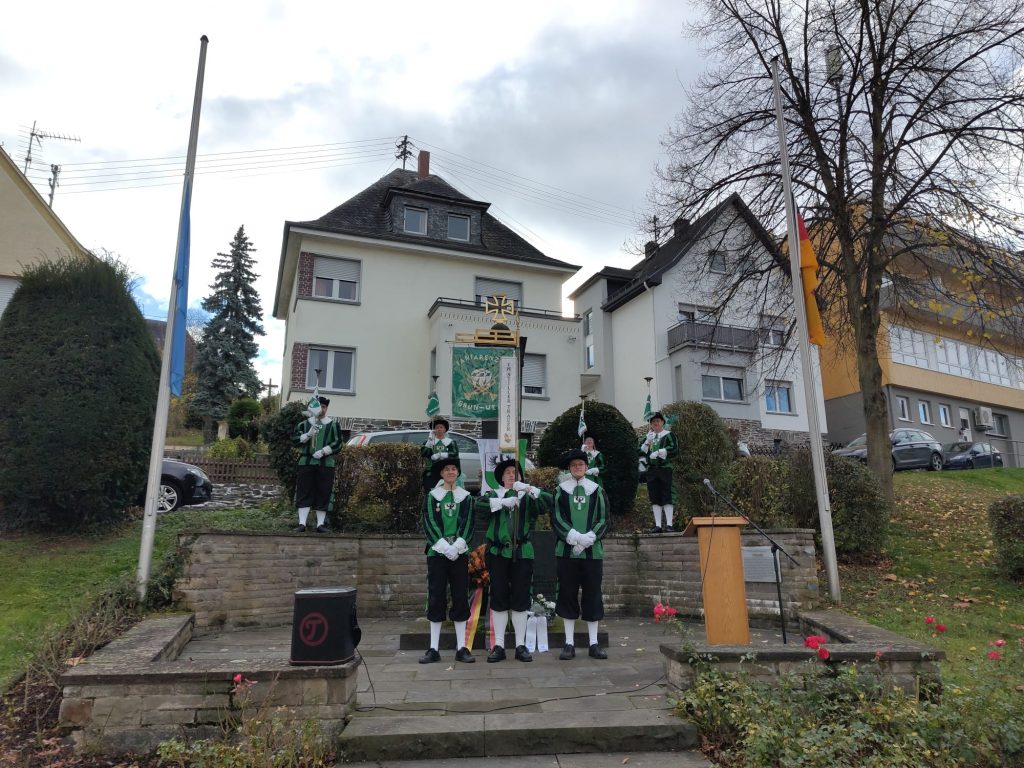 Auch am diesjährigen Volkstrauertag war der Fanfarenzug Grün-Weiß Bad Salzig wieder als Unterstützer dabei. Die Eröffnung erfolgte durch die „Trauerfanfare“, gespielt auf den historischen Aida-Fanfaren. Auch die Standarte des Vereins nahm, gemeinsam mit den Fahnen der Nachbarschaften und der Standarte der Freiwilligen Feuerwehr Bad Salzig, an der Veranstaltung teil.